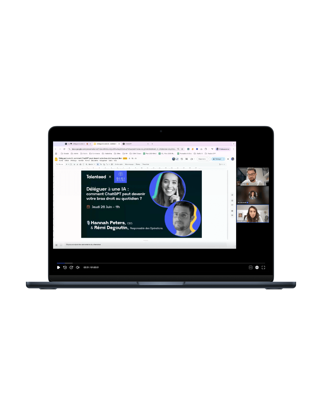 Dans ce webinaire ChatGPT, découvrez comment automatiser vos e-mails, synthèses et présentations grâce à l’IA. Profitez de cette formation intelligence artificielle gratuite pour optimiser votre organisation et gagner du temps.